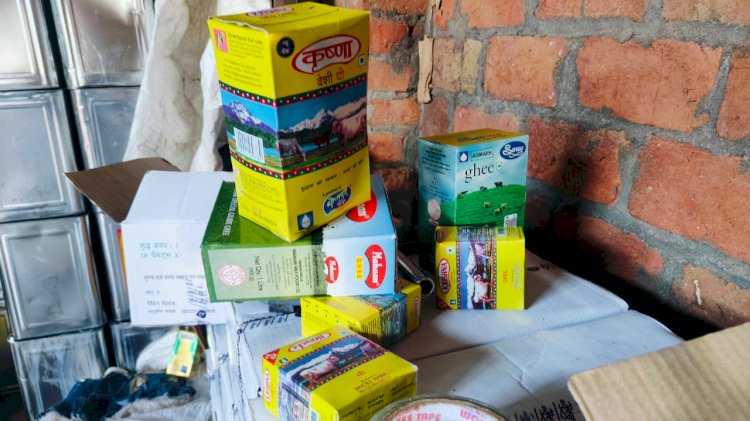 1000 लीटर नकली घी और पैकिंग सामग्री बरामद की गई। सरस और अन्य ब्रांड के घी में बदबू आ रही थी।