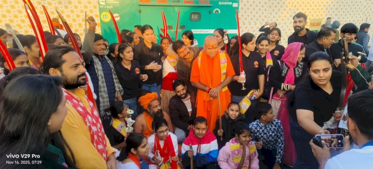जयपुर: 16 नवंबर 2025 को जयपुर (Jaipur) के अल्बर्ट हॉल (Albert Hall) में TBZ ने गौ सम्मान दौड़ (Gau Samman Daud) आयोजित की। गौ सेवा व सुरक्षा उद्देश्य। जय भवानी मातृशक्ति तलवारबाजी संघ (Jai Bhawani Matrishakti Talwarbazi Sangh) की बालिकाओं ने शस्त्र प्रदर्शन किया।