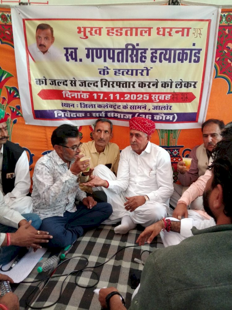 जालोर: जालोर में गणपतसिंह हत्याकांड के आरोपियों की गिरफ्तारी की मांग को लेकर 80 वर्षीय मां ने 9 दिन बाद भूख हड़ताल तोड़ी। सांसद लुंबाराम चौधरी भाजपा नेता रविन्द्रसिंह बालावत, दीप सिंह धनानी, मांगुसिंह बावली आदि ने जूस पिलाकर अनशन समाप्त करवाया। राजपूत समाज ने 30 दिन का अल्टीमेटम दिया है।