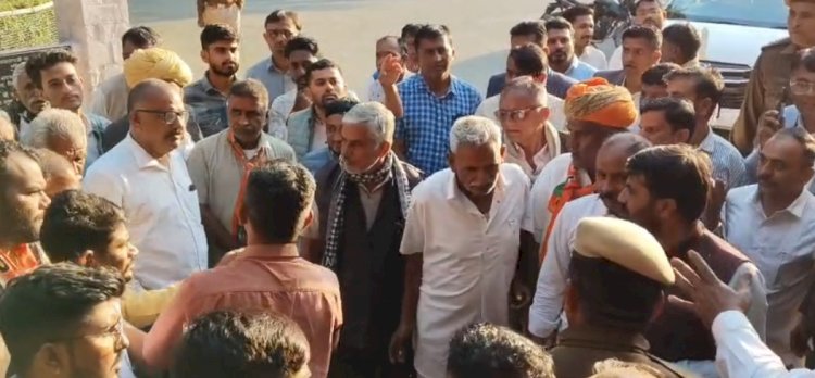 - विधायक जीवाराम के खिलाफ नारेबाजी।