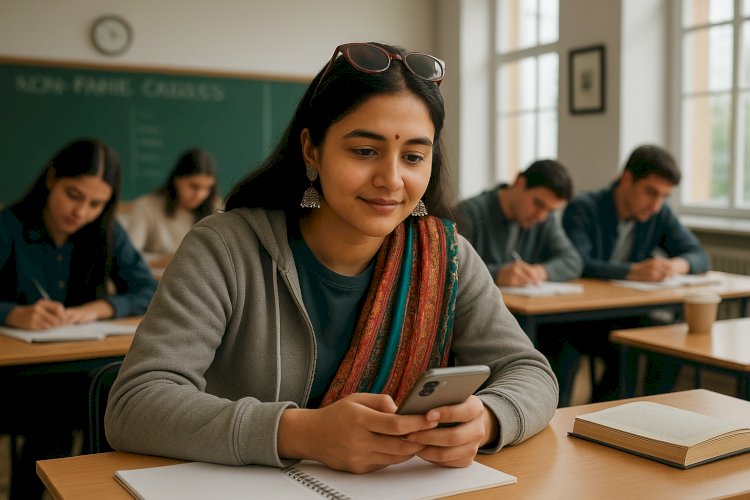 - पूनम भाटी MA हिंदी सेकंड सेमेस्टर की परीक्षा में मोबाइल से नकल कर रही थीं।