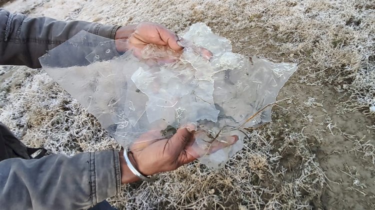पहाड़ी क्षेत्र में ठंड का असर इतना व्यापक है कि प्राकृतिक जल स्रोत और कृत्रिम पोखर पूरी तरह से जम चुके हैं। सालगांव और चांदमारी फायरिंग रेंज के आसपास के इलाकों में घास के मैदानों पर बर्फ की सफेद चादर बिछी हुई नजर आई। स्थानीय निवासियों ने बताया कि पानी के बर्तनों और खुले स्थानों पर रखे पानी के ऊपर बर्फ की मोटी-मोटी परतें जम गई हैं, जो आमतौर पर केवल डीप फ्रीजर में ही देखने को मिलती हैं। विजुअल्स में देखा जा सकता है कि बर्फ की मोटाई इतनी अधिक है कि उसे आसानी से हाथों में उठाया जा सकता है।