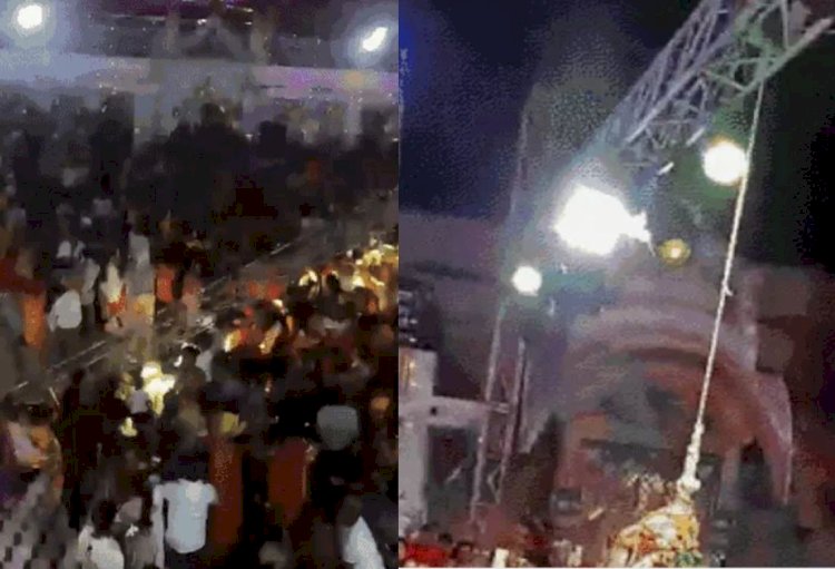 बार-बार रस्सी को खींचने से स्टैंड ढीला हो गया और भीड़ पर आ गिरा।