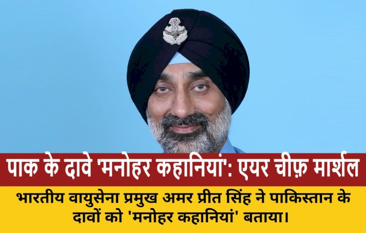 New Delhi | भारतीय वायुसेना के एयर चीफ़ मार्शल अमर प्रीत सिंह ने भारत और पाकिस्तान के बीच हुए सैन्य संघर्ष के दौरान पाकिस्तान के दावों को 'मनोहर कहानियां' करार दिया है। उन्होंने स्पष्ट किया कि हमें 'ऑपरेशन सिंदूर' के दौरान भारत को हुए संभावित नुक़सान पर अनावश्यक रूप से बात नहीं करनी चाहिए, बल्कि दुश्मन को अपने नुकसान का पता लगाने देना चाहिए।