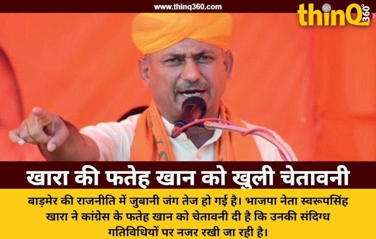 बाड़मेर के सियाणी स्कूल में आयोजित एक कार्यक्रम के दौरान स्वरूपसिंह खारा ने अपने संबोधन में शिव विधानसभा क्षेत्र से कांग्रेस के बागी रहे और वर्तमान कांग्रेस नेता फतेह खान पर जमकर हमला बोला। खारा ने कहा कि फतेह खान को हम छोड़ेंगे नहीं और न ही उन्हें किसी भी सूरत में बख्शा जाएगा। उन्होंने चेतावनी भरे लहजे में कहा कि तुम हमारे रडार पर हो और तुम्हारी हर गतिविधि की जानकारी हमारे पास है। खारा ने आरोप लगाया कि फतेह खान पाकिस्तान जाते रहते हैं और वहां जाकर वे क्या करते हैं इसकी पूरी खबर प्रशासन और सरकार को है। उन्होंने कहा कि अब भाजपा की डबल इंजन सरकार है और मर्यादाहीन आचरण करने वालों को सबक सिखाया जाएगा।