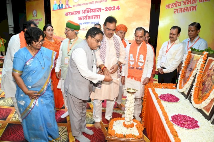 भारतीय जनता पार्टी सदस्यता अभियान की प्रदेश स्तरीय कार्यशाला जयपुर के खण्डेलवाल गर्ल्स कॉलेज में आयोजित हुई। मदन राठौड़, भजनलाल शर्मा