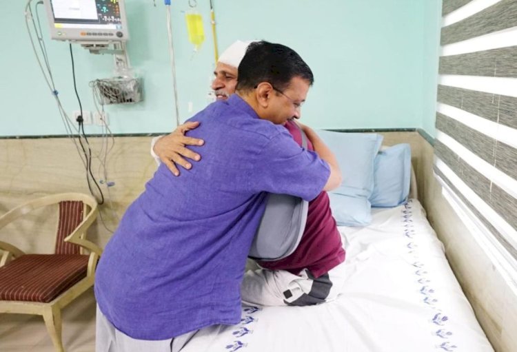 सीएम अरविंद केजरीवाल अस्तपताल पहुंचते ही अपने पुराने मित्र सत्येंद्र जैन को देखते ही उनसे लिपट गए।