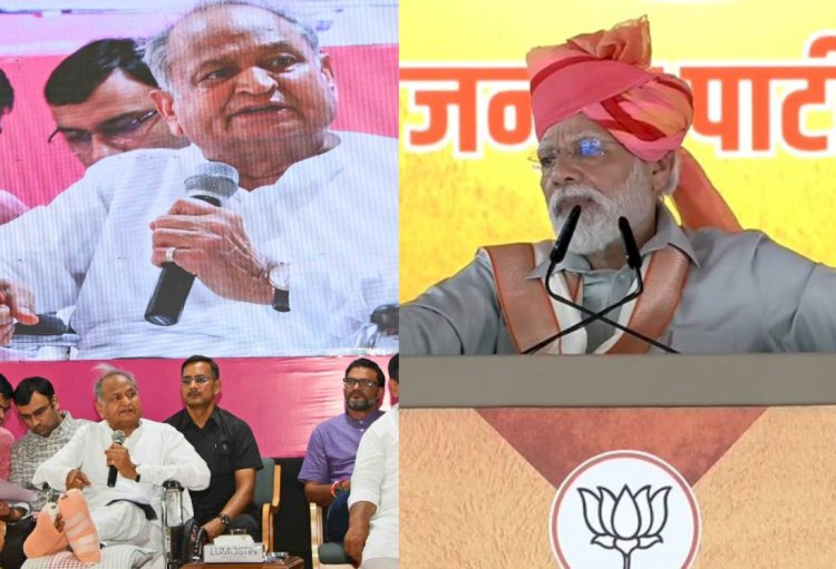 पीएम मोदी ने अपने संबोधन में कहा कि गहलोत जी, चोट के कारण कार्यक्रम में नहीं आ पाए, मैं उनके उत्तम स्वास्थ्य की कामना करता हूं।