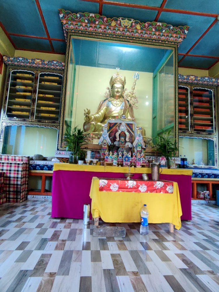 ओह ! यही पद्मसंभव हैं। तिब्बत में वज्रयान के प्रसारक (स्थानीय मान्यतानुसार प्रवर्तक) पद्मसंभव को महापंडित राहुल सांकृत्यायन जी ने भले ही साधारण भिक्षु कहकर किनारे कर दिया हो किंतु यहां के अधिकांश मंदिरों में यह बड़े ही ठरके से त्रिशूल कांधे पर धारे पूजित होते मिलेंगे।