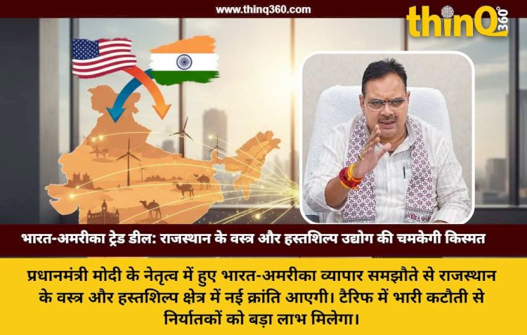 प्रधानमंत्री मोदी के नेतृत्व में हुए भारत-अमरीका व्यापार समझौते से राजस्थान के वस्त्र और हस्तशिल्प क्षेत्र में नई क्रांति आएगी। टैरिफ में भारी कटौती से निर्यातकों को बड़ा लाभ मिलेगा।
