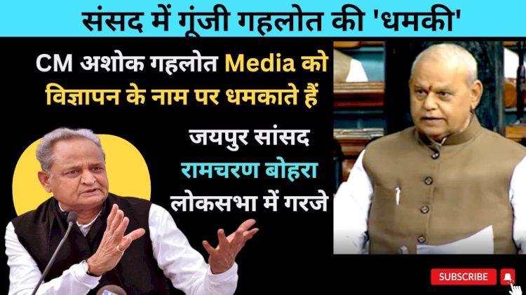 जयपुर | राजस्थान के मुख्यमंत्री अशोक गहलोत पत्रकारों को विज्ञापन के नाम पर धमकाते हैं। यही नहीं भारत की प्रेस परिषद उनके खिलाफ प्रस्ताव लेकर निंदा भी कर चुकी है। यह कहते हुए जयपुर के सांसद रामचरण बोहरा ने सोमवार को लोकसभा में शून्यकाल के दौरान यह मुद्दा उठाया। उन्होंने कहा कि इस मामले में केन्द्र सरकार के सूचना एवं प्रसारण मंत्री की ओर से कार्यवाही अपेक्षित है।