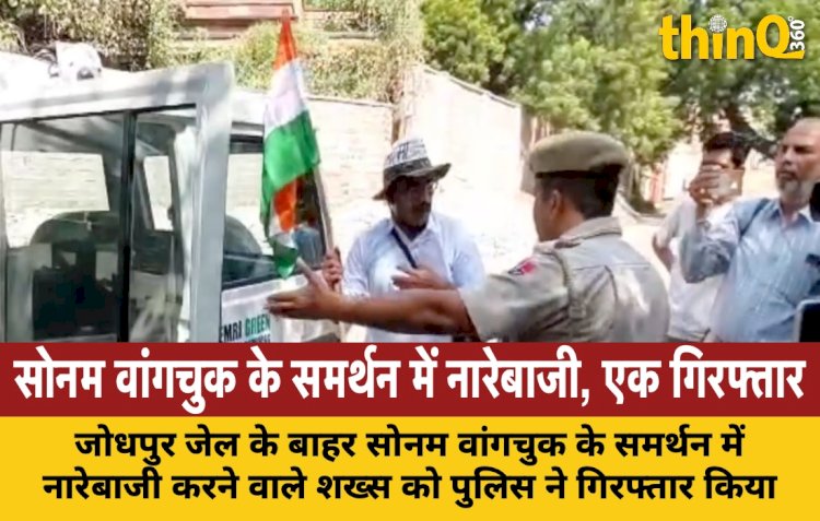 जोधपुर | जोधपुर (Jodhpur) सेंट्रल जेल (Central Jail) में बंद जलवायु कार्यकर्ता और प्रदर्शनकारी नेता सोनम वांगचुक (Sonam Wangchuk) के समर्थन में शनिवार (27 सितंबर) सुबह जेल परिसर के बाहर एक व्यक्ति ने प्रदर्शन किया। इस दौरान उस व्यक्ति ने तिरंगा झंडा लेकर 'भारत माता की जय' के नारे लगाए और सोनम वांगचुक को देशभक्त बताया। पुलिस ने तुरंत कार्रवाई करते हुए प्रदर्शनकारी को हिरासत में ले लिया।