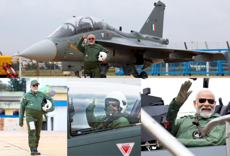 पीएम मोदी ने आज बेंगलुरु में लड़ाकू विमान तेजस (Tejas) में उड़ान भरी है।