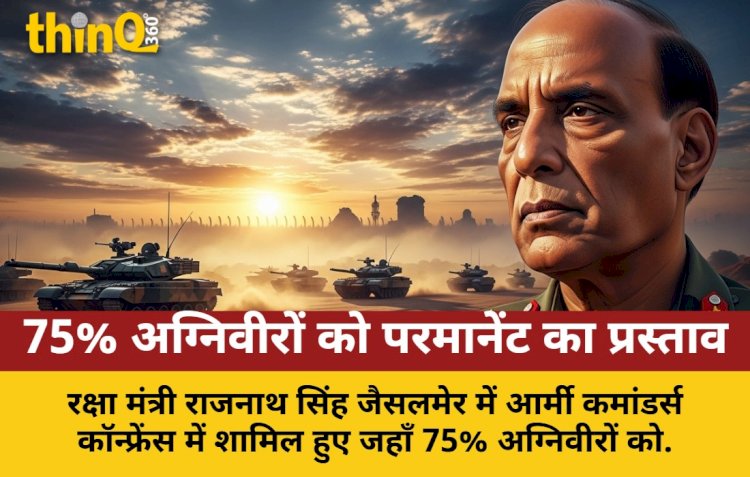 जैसलमेर: रक्षा मंत्री राजनाथ सिंह (Defence Minister Rajnath Singh) जैसलमेर (Jaisalmer) में आर्मी कमांडर्स कॉन्फ्रेंस (Army Commanders Conference) में शामिल हुए जहाँ 75% अग्निवीरों को स्थायी नियुक्ति देने का प्रस्ताव रखा जाएगा। उन्होंने पाकिस्तान (Pakistan) को चेतावनी दी और 'ऑपरेशन सिंदूर' (Operation Sindoor) का जिक्र किया।