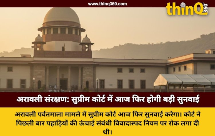 अरावली पर्वतमाला मामले में सुप्रीम कोर्ट आज फिर सुनवाई करेगा। कोर्ट ने पिछली बार पहाड़ियों की ऊंचाई संबंधी विवादास्पद नियम पर रोक लगा दी थी।