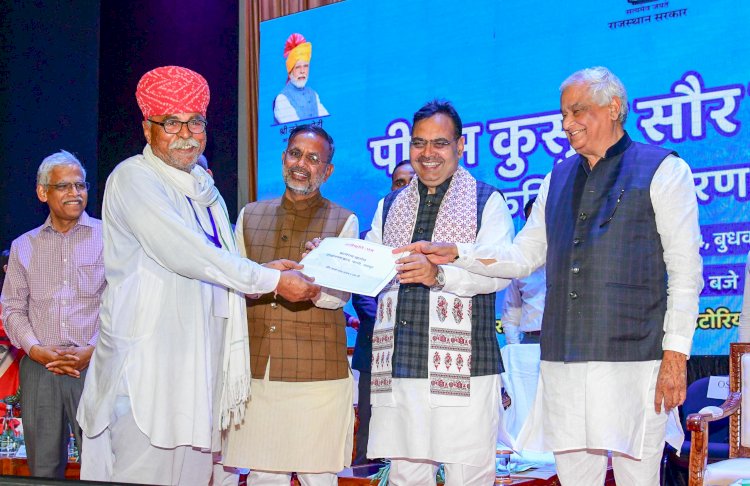 भजनलाल शर्मा बुधवार को जयपुर के दुर्गापुरा स्थित राज्य कृषि प्रबंध संस्थान में आयोजित पीएम कुसुम सौर पम्प संयंत्र स्वीकृति-पत्र वितरण समारोह को सम्बोधित कर रहे थे। समारोह में 500 से ज्यादा किसान उपस्थित थे जिनमें से 10 कृषकों को मुख्यमंत्री और कृषि एवं उद्यानिकी मंत्री डॉ. किरोड़ी लाल ने स्वीकृति-पत्र प्रदान किये।