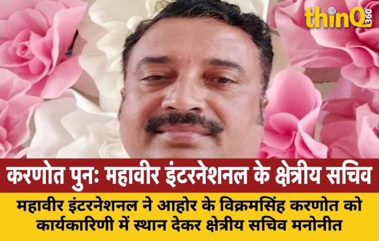 आहोर | सेवा क्षेत्र की अग्रणी संस्था महावीर इंटरनेशनल ने एक बार पुनः आहोर निवासी विक्रमसिंह करणोत पर भरोसा जताते हुए उन्हें संस्थान की केन्द्रीय कार्यकारिणी में स्थान दिया है। इस महत्वपूर्ण मनोनयन के साथ, करणोत को संस्थान का क्षेत्रीय सचिव नियुक्त किया गया है, जो उनके पूर्व अनुभव और संगठन के प्रति समर्पण को दर्शाता है।