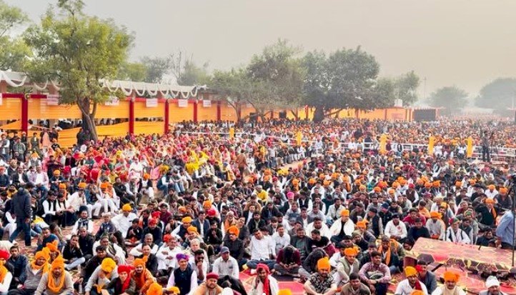 खेड़ली | राजस्थान के अलवर जिले के खेड़ली कस्बे में रविवार को 'पूर्वी राजस्थान क्षत्रिय महासमागम' का भव्य आयोजन हुआ। इस महासमागम में 10 जिलों की 39 विधानसभा क्षेत्रों से आए 30 हजार से अधिक लोगों का भारी जनसैलाब उमड़ा। कृषि उपज मंडी में आयोजित इस कार्यक्रम में समाज के दिग्गजों ने हुंकार भरते हुए राजनीतिक प्रतिनिधित्व और आरक्षण के मुद्दों पर अपनी मांगें रखीं।