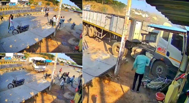 फुटेज में साफ दिख रहा है कि ट्रेलर तेज रफ्तार से आता है और अचानक नियंत्रण खो देता है।