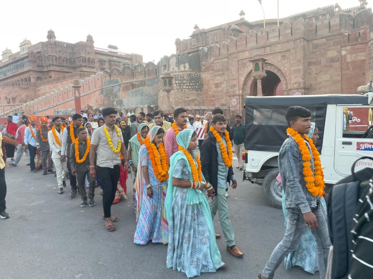 बीकानेर के ऐतिहासिक जूनागढ़ किले से जब यह शोभायात्रा विंटेज कारों और राजसी रथों में रवाना हुई, तो पूरा शहर मानो इस सामाजिक उत्सव में शामिल हो उठा।