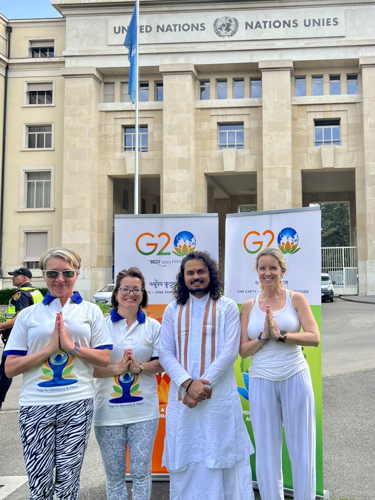 जिनेवा, स्विटज़रलैंड - अंतर्राष्ट्रीय योग दिवस के शुभ अवसर पर, भारत के प्रमुख आध्यात्मिक संगठन संयुक्त राष्ट्र संगठन के जिनेवा कार्यालय में एक भव्य योग कार्यक्रम आयोजित करने के लिए एकत्रित हुए। संयुक्त राष्ट्र द्वारा आयोजित योग के इस वैश्विक उत्सव ने इस प्राचीन विज्ञान की शक्ति और महत्व को प्रदर्शित किया।