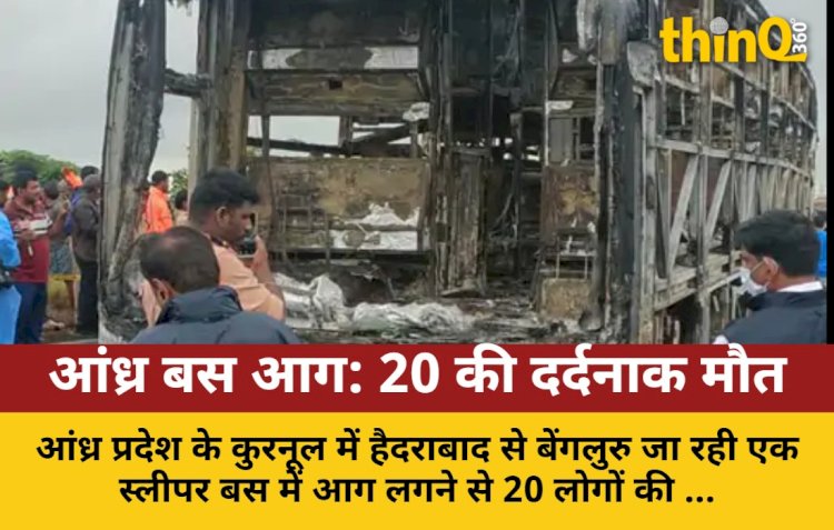 आंध्र प्रदेश (Andhra Pradesh) के कुरनूल (Kurnool) में हैदराबाद (Hyderabad) से बेंगलुरु (Bengaluru) जा रही एक स्लीपर बस (sleeper bus) में आग लगने से 20 लोगों की दर्दनाक मौत हो गई। यह हादसा तड़के सुबह 4 बजे के करीब हुआ जब बस एक दोपहिया वाहन से टकरा गई।