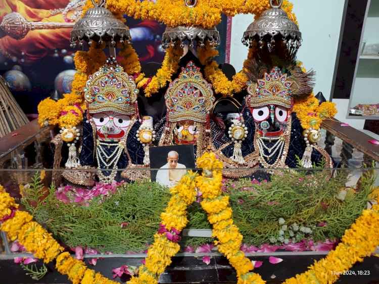 इस मौके पर महंत देवेंद्र गिरी महाराज ने श्री जगन्नाथ, श्री बलभद्र और बहन सुभद्रा की प्रतिमाओं की अगवानी की और आरती उतारकर प्रसाद वितरित किया।