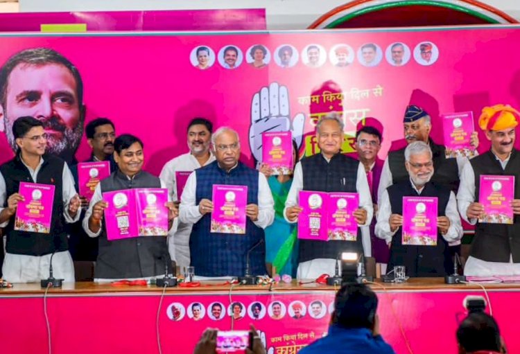 कांग्रेस ने जारी किया घोषणापत्र: 4 लाख सरकारी नौकरियां, 400 में गैस सिलेंडर, 50 लाख का चिरंजीवी बीमा, ये भी किए बड़े वादे