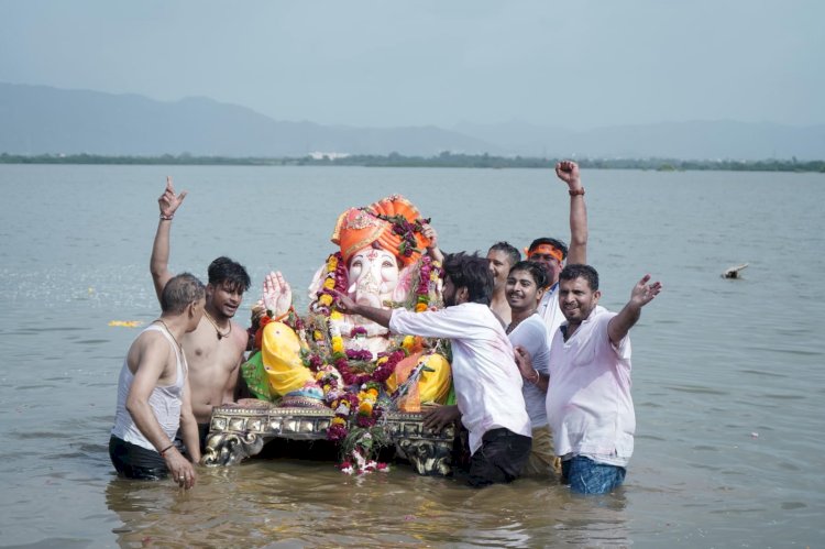 मंगलवार को गणेश प्रतिमा का भव्य जुलूस गोयली चौराहा से शुरू होकर अहिंसा सर्किल, पैलेस रोड, सरजवाब गेट, सदर बाजार, बस स्टैंड रोड, जेल चौराहा होते हुए पुनः गोयली चौराहा पहुंचा और वहां से आगे कमेरी डैम में गणपति विसर्जन किया गया।
