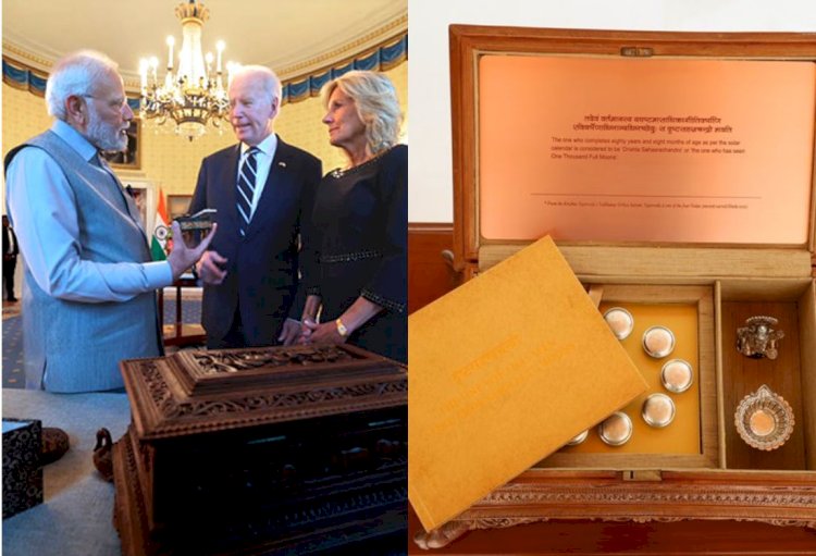पीएम नरेन्द्र मोदी द्वारा अमेरिकी राष्ट्रपति बाइडेन को उपहार में दिए गए बॉक्स में 10 दान राशि भी हैं। जिनमें...