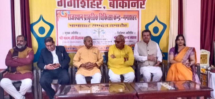 जयपुर । बीकानरे जिले के प्राकृतिक चिकित्सा एवं योग केंद्र में सोमवार को भामाशाह सम्मान समारोह आयोजित हुआ। इसमें शिक्षा मंत्री मदन दिलावर और खाद्य एवं नागरिक आपूर्ति मंत्री सुमित गोदारा ने शिरकत की। इस अवसर पर शिक्षा और पंचायती राज मंत्री मदन दिलावर ने कहा कि योग और प्राकृतिक चिकित्सा, विश्व को भारत की देन रही है।