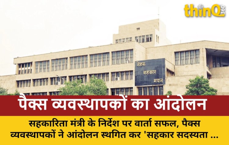 पैक्स व्यवस्थापकों का आंदोलन स्थगित: सहकारिता मंत्री के निर्देश पर वार्ता सफल, पैक्स व्यवस्थापकों ने आंदोलन स्थगित कर 'सहकार सदस्यता अभियान' में भागीदारी का लिया निर्णय