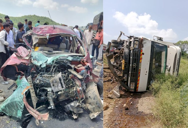 ये सड़क हादसा एक तेज रफ्तार कार और ट्रक के टक्कराने से हुआ। दोनों वाहनों की भिड़ंत इतनी जोरदार थी कि कार के परखच्चे उड़ गए और ट्रक पलट गया।
