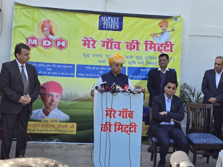 जयपुर । केंद्रीय कृषि एवं किसान कल्याण राज्य मंत्री भागीरथ चौधरी ने गुरुवार को अपने दिल्ली स्थित आवास से 'मेरे गांव की मिट्टी-शुद्ध उगाओ, शुद्ध खिलाओ' अभियान का शुभारंभ किया। इस अभियान की पहल मसाला कंपनी एमडीएच ने की है। इसका उद्देश्य किसानों को पेस्टीसाइड के दुष्परिणामों से अवगत कराना और उन्हें गुणवत्तापूर्ण तथा पेस्टीसाइडमुक्त फसलें उगाने के लिए प्रेरित करना है।