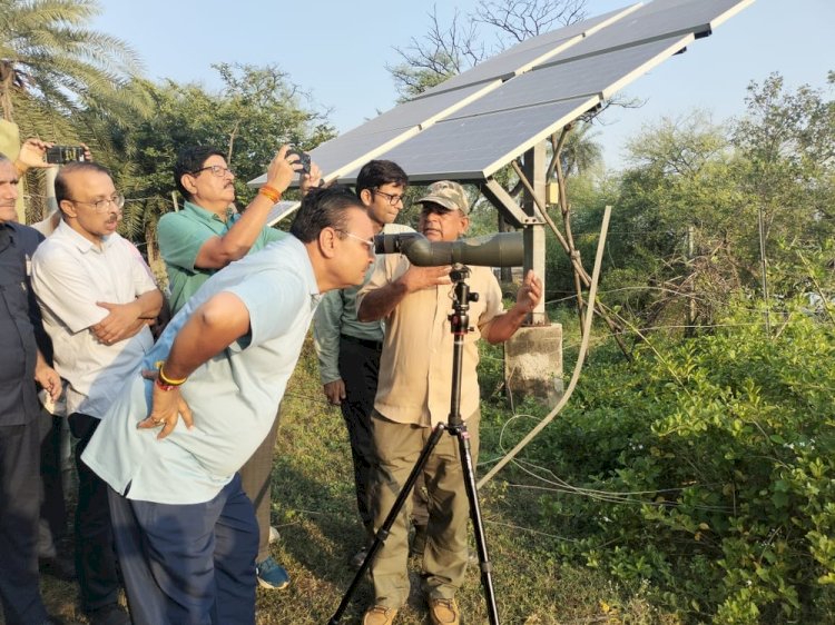जयपुर। मुख्यमंत्री भजनलाल शर्मा ने अपने दो दिवसीय भरतपुर दौरे के दूसरे दिन शनिवार को सुबह केवलादेव घना राष्ट्रीय उद्यान का भ्रमण कर निरीक्षण किया। उन्होंने उद्यान के मुख्य द्वार से पक्षी व्यू प्वाइंट तक पैदल भ्रमण कर संपूर्ण क्षेत्र का अवलोकन किया तथा बारिश से लबालब हुई झीलों को देखकर प्रसन्नता व्यक्त की। उन्होंने यहां विभिन्न प्रजातियों के पक्षियों को दूरबीन से निहारा।