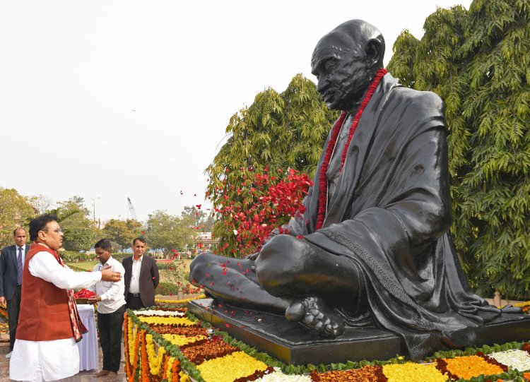 मुख्यमंत्री भजनलाल शर्मा ने महात्मा गांधी जी की प्रतिमा पर किए श्रद्धासुमन अर्पित