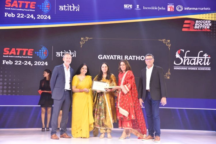 जयपुर । ग्रेटर नोएडा में साउथ एशिया ट्रेवल एण्ड टूरिज्म (साटे) इंडियन ट्रेवल मार्ट के दूसरे दिन शुक्रवार को आयोजित समारोह में राजस्थान पर्यटन विभाग कि प्रमुख शासन सचिव श्रीमती गायत्री राठौड़ को नारी शक्ति सम्मान दिया गया।