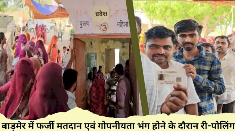 बाड़मेर | बाड़मेर लोकसभा सीट पर सेकंड फेज 26 अप्रैल को मतदान हुआ था। लेकिन चौहटन (chouhtan) विधानसभा के एक बूथ पर फर्जी मतदान और गोपनीयता भंग (breach of confidentiality) होने पर दोबारा पोलिंग बुधवार (8 मई) को सुबह 7 बजे शुरू हुई। सुबह 1 बजे तक एक बूथ पर 39.02 प्रतिशत मतदान हुआ है। बूथ पर जिला निर्वाचन अधिकारी निशांत जैन, एसपी नरेंद्र सिंह मीना (SP narendra singh meena) पहुंचे और निरीक्षण किया। कांग्रेस प्रत्याशी उम्मेदाराम बेनीवाल (ummedaram beniwal) और निर्दलीय प्रत्याशी रविंद्र सिंह भाटी (ravindra singh bhati) भी पहुंचे।