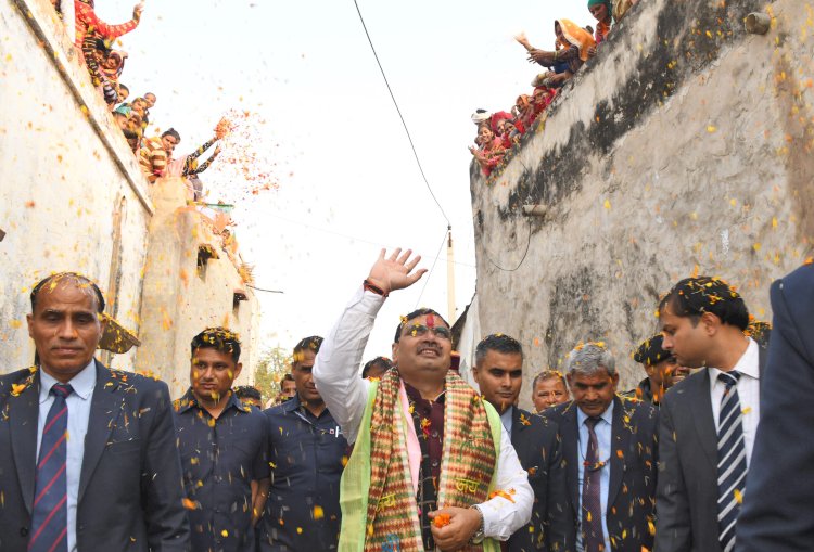 जयपुर, 5 फरवरी | मुख्यमंत्री भजनलाल शर्मा पदभार संभालने के करीब डेढ माह बाद सोमवार को पहली बार अपने पैतृक गांव अटारी पहुंचे। क्षेत्र के निवासियों ने हजारों की संख्या में मुख्यमंत्री का दिल खोल कर स्वागत किया। छतों पर चढ़े महिला, पुरूष और बच्चों ने फूल बरसा कर उनका भव्य स्वागत किया तो भाव-विभोर हुए मुख्यमंत्री भजनलाल शर्मा ने नंगे पांव ही पूरे गांव की परिक्रमा कर ग्रामीणों का अभिवादन स्वीकार किया। मुख्यमंत्री ने अपने पैतृक निवास पहुंचकर माता-पिता का आशीर्वाद भी लिया।