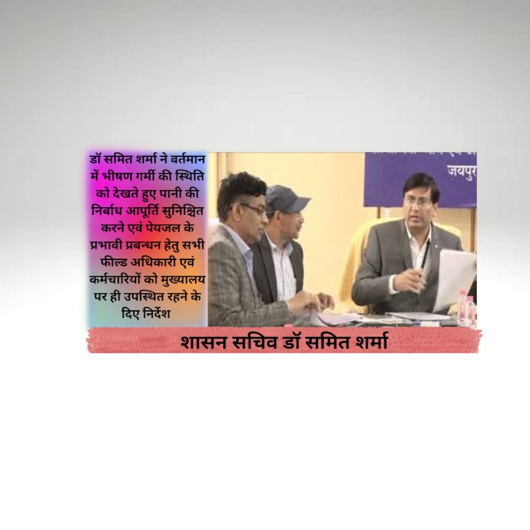 जयपुर। जन स्वास्थ्य अभियांत्रिकी विभाग (Public Health Engineering Department) के शासन सचिव डॉ समित शर्मा ने वर्तमान में भीषण गर्मी (extreme heat) की स्थिति को देखते हुए पानी की निर्बाध आपूर्ति सुनिश्चित करने एवं पेयजल (Drinking Water) के प्रभावी प्रबन्धन हेतु सभी फील्ड अधिकारी एवं कर्मचारियों को मुख्यालय पर ही उपस्थित रहने के निर्देश दिए हैं। साथ ही बिना सक्षम अनुमति के मुख्यालय नहीं छोडेंगे। यदि कोई अधिकारी एवं कार्मिक 3 दिवस से अधिक छुट्टी पर है तो उसे खारिज किया जायेगा।