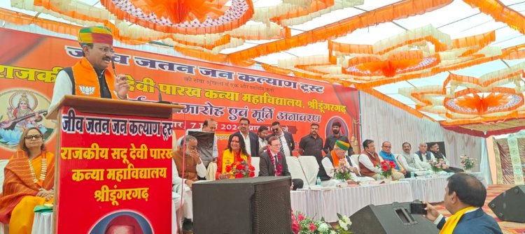जयपुर । उपमुख्यमंत्री डॉ. प्रेमचंद बैरवा ने कहा कि समाज की सेवा में भामाशाहों का सदैव प्रेरक योगदान रहा है। जीव जतन जन कल्याण ट्रस्ट द्वारा बीकानेर जिले के डूंगरगढ़ में नवनिर्मित राजकीय सदू देवी पारख कन्या महाविद्यालय भवन के लोकार्पण समारोह में गुरुवार को मुख्य अतिथि के रूप में संबोधित करते हुए उपमुख्यमंत्री ने यह बात कही। उन्होंने जीव जतन जन कल्याण ट्रस्ट द्वारा शिक्षा के रूप में डूंगरगढ़ वासियों को दी गई इस सौगात के लिए पारख परिवार का आभार व्यक्त करते हुए कहा कि इस तरह के कार्य न केवल समाज के विकास में भामाशाहों की प्रतिबद्धता दिखाते हैं