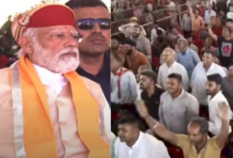 नाथद्वारा में हुए प्रधानमंत्री मोदी के इस कार्यक्रम में जब सीएम गहलोत ने अपना भाषण शुरू किया तो सभा स्थल पर मोदी-मोदी के लगने शुरू हो गए। नारेबाजी ऐसी हुई कि खुद मोदी को इशारा करके लोगों को मना करना पड़ा।