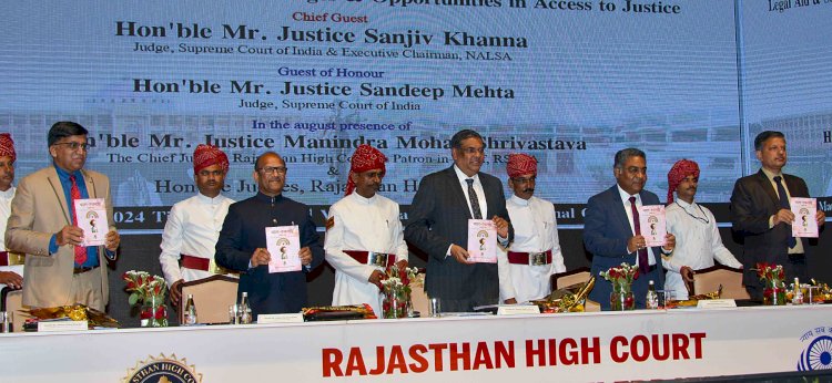 जयपुर | राजस्थान उच्च न्यायालय ने वर्ष 2024 में अपनी स्थापना के 75 वर्ष पूर्ण कर लिए हैं। राजस्थान उच्च न्यायालय के प्लेटिनम जुबली सेलिब्रेशन के इस अवसर पर आज शनिवार को जयपुर के राजस्थान इंटरनेशनल सेंटर में राजस्थान उच्च न्यायालय के तत्वाधान में राजस्थान राज्य विधिक सेवा प्राधिकरण (रालसा) द्वारा 'विधिक सहायता एवं सामाजिक न्याय: न्याय तक पहुंच में चुनौतियां एवं अवसर' विषय पर एक दिवसीय विचार गोष्ठी एवं संवाद कार्यक्रम का आयोजन किया गया।