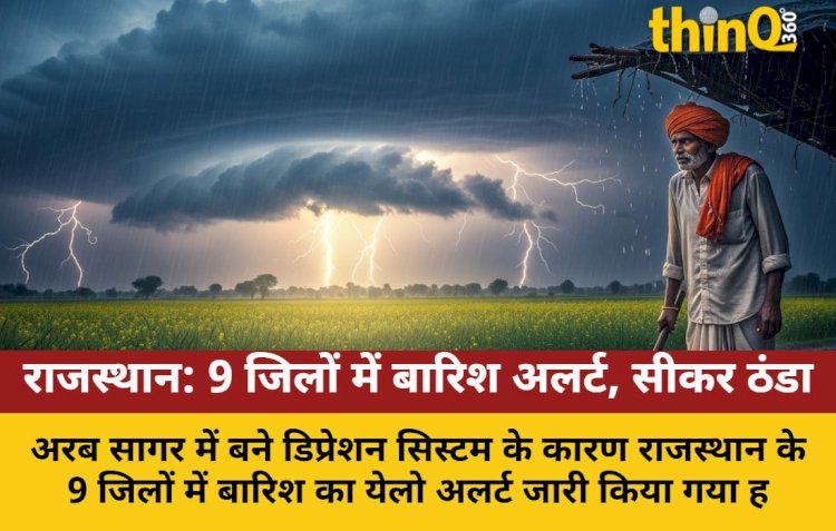 अरब सागर (Arabian Sea) में बने डिप्रेशन सिस्टम (Depression System) के कारण राजस्थान (Rajasthan) के 9 जिलों में बारिश (Rain) का येलो अलर्ट (Yellow Alert) जारी किया गया है, जिसमें किसानों को फसलें सुरक्षित रखने की सलाह दी गई है।