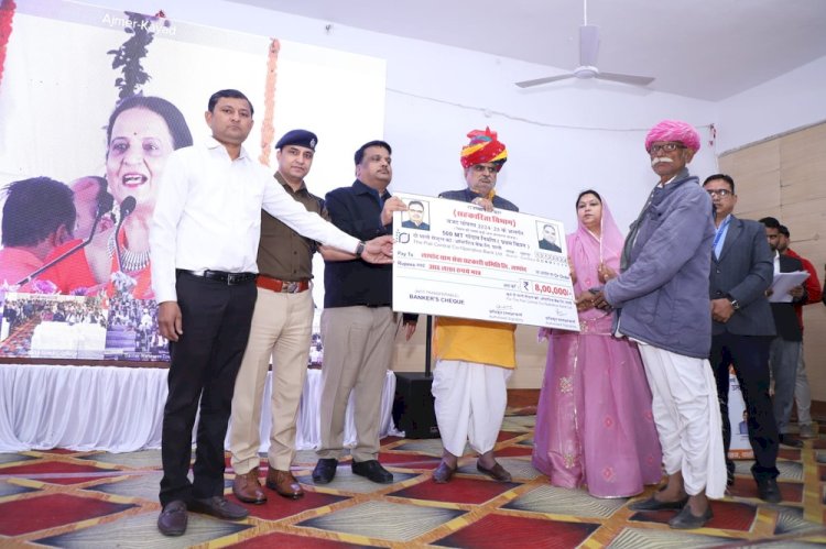 इसी प्रकार सहकारिता विभाग में ग्राम सेवा सहकारी समिति गोदाम निर्माण के लिए चेक वितरण, अन्न भंडारण योजना अंतर्गत बजट घोषणा 24 25 के तहत 500 एमटी गोदाम की प्रथम किश्त का चेक वितरण किया गया। इस अवसर पर प्रबंधक निदेशक सेंट्रल कोऑपरेटिव बैंक पूनाराम चोयल ने बताया कि घाणेराव ग्राम सेवा सहकारी समिति लि घाणेराव को आठ लाख व लापोद ग्राम सेवा सहकारी समिति को 8 लाख का हस्तांतरण किया गया।