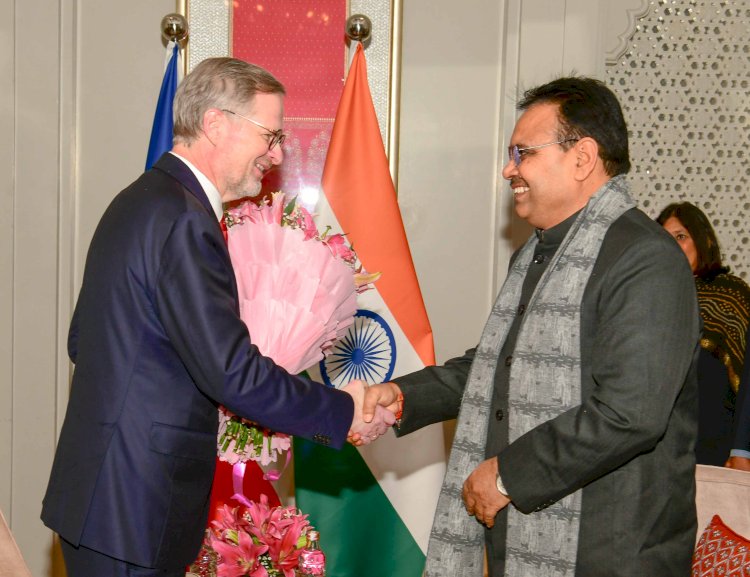 जयपुर | मुख्यमंत्री भजनलाल शर्मा ने गुरूवार को जयपुर में चेक गणराज्य के प्रधानमंत्री पेट्र फियाला से मुलाकात कर उनका स्वागत किया। मुख्यमंत्री ने राजस्थान में पर्यटन को बढ़ावा देने, तकनीकी क्षेत्र में नवाचार कर रोजगार सृजित करने, औद्योगिक विकास सहित विभिन्न मुद्दों पर पेट्र फियाला से चर्चा की। फियाला ने मुख्यमंत्री द्वारा किए गए परंपरागत स्वागत के लिए उनको धन्यवाद दिया। उन्होंने कहा कि वे राजस्थान की आतिथ्य परंपरा से अत्यधिक प्रभावित हैं।