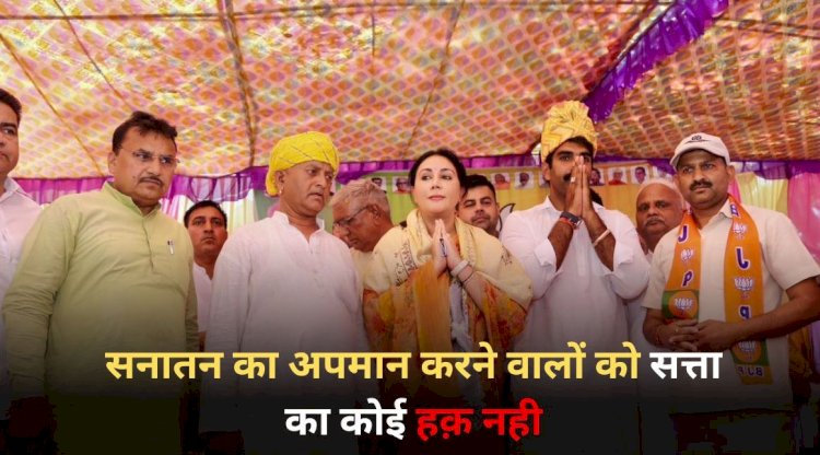 हरियाणा भिवानी | राजस्थान उपमुख्यमंत्री दिया कुमारी ने शनिवार को हरियाणा के भिवानी-महेन्द्रगढ़ लोकसभा से भाजपा प्रत्याशी धर्मवीर सिंह जी के समर्थन में प्रचार किया। भोजावास में आयोजित एक जनसभा में उन्होने भाजपा को प्रचंड बहुमत देकर नरेन्द्र मोदी जी को तीसरी बार प्रधानमंत्री बनाने की अपील की