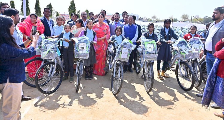 उपमुख्यमंत्री बुधवार को आरबीएल बैंक की ओर से भवानी निकेतन कॉलेज ग्राउण्ड में सीएसआर के तहत विद्याधर नगर क्षेत्र की 400 गरीब बालिकाओं को साइकिल एवं स्कूल किट वितरण के लिए आयोजित कार्यक्रम को संबोधित कर रही थी।