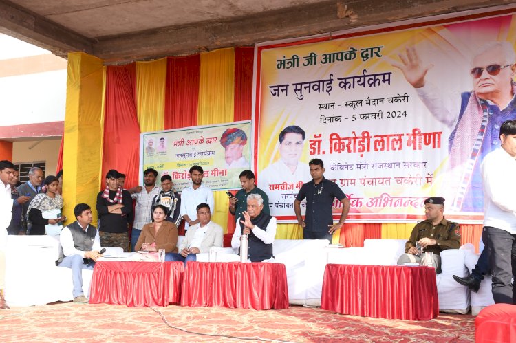 कृषि, उद्यानिकी एवं ग्रामीण विकास मंत्री डॉ. किरोड़ी लाल मीना की अध्यक्षता में सोमवार को सवाई माधोपुर जिले के मीणा हाईकोट अजनोटी एवं राजकीय उच्च माध्यमिक विद्यालय चकेरी में 'मंत्री आपके द्वार' एवं जनसुनवाई कार्यक्रम आयोजित हुआ।