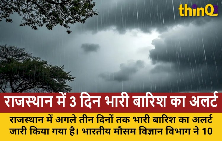 राजस्थान (Rajasthan) में अगले तीन दिनों तक भारी बारिश का अलर्ट (Heavy Rain Alert) जारी किया गया है। भारतीय मौसम विज्ञान विभाग (IMD) ने 10 जिलों के लिए चेतावनी दी है।